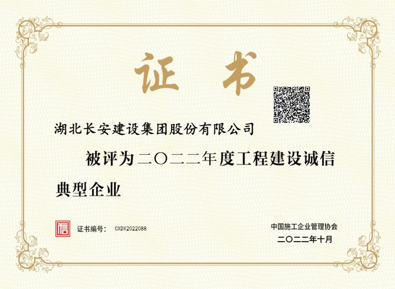 集團公司榮膺2022年度湖北省建筑施工企業質量管理評價第9名