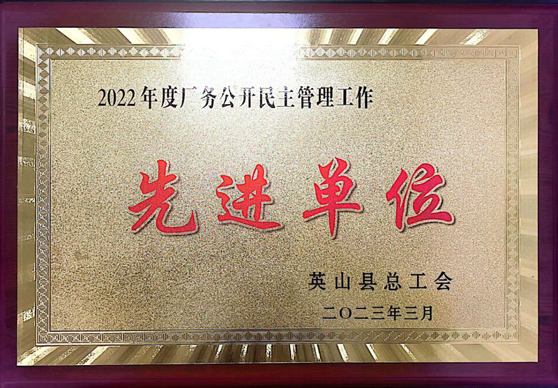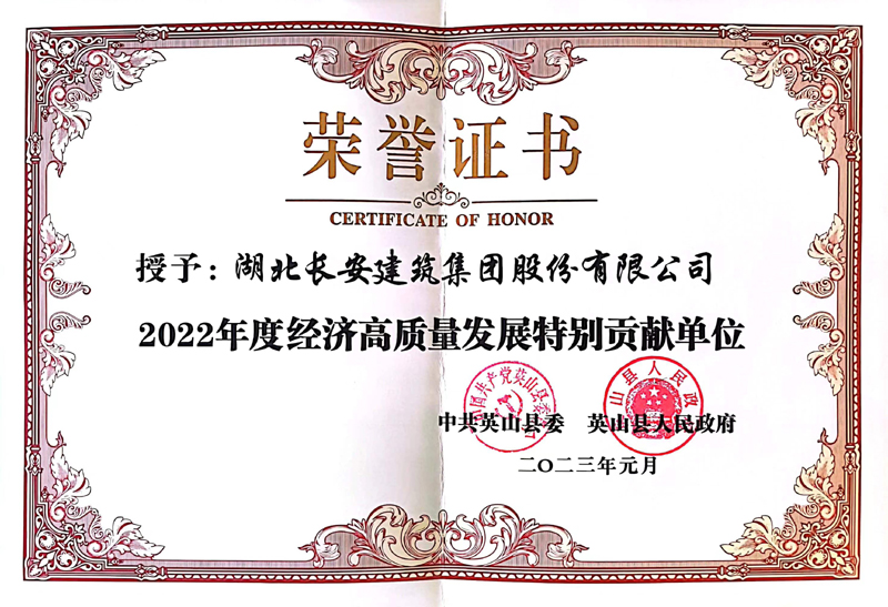 集團榮獲英山縣“2022年度經濟高質量發展特別貢獻單位”榮譽稱號