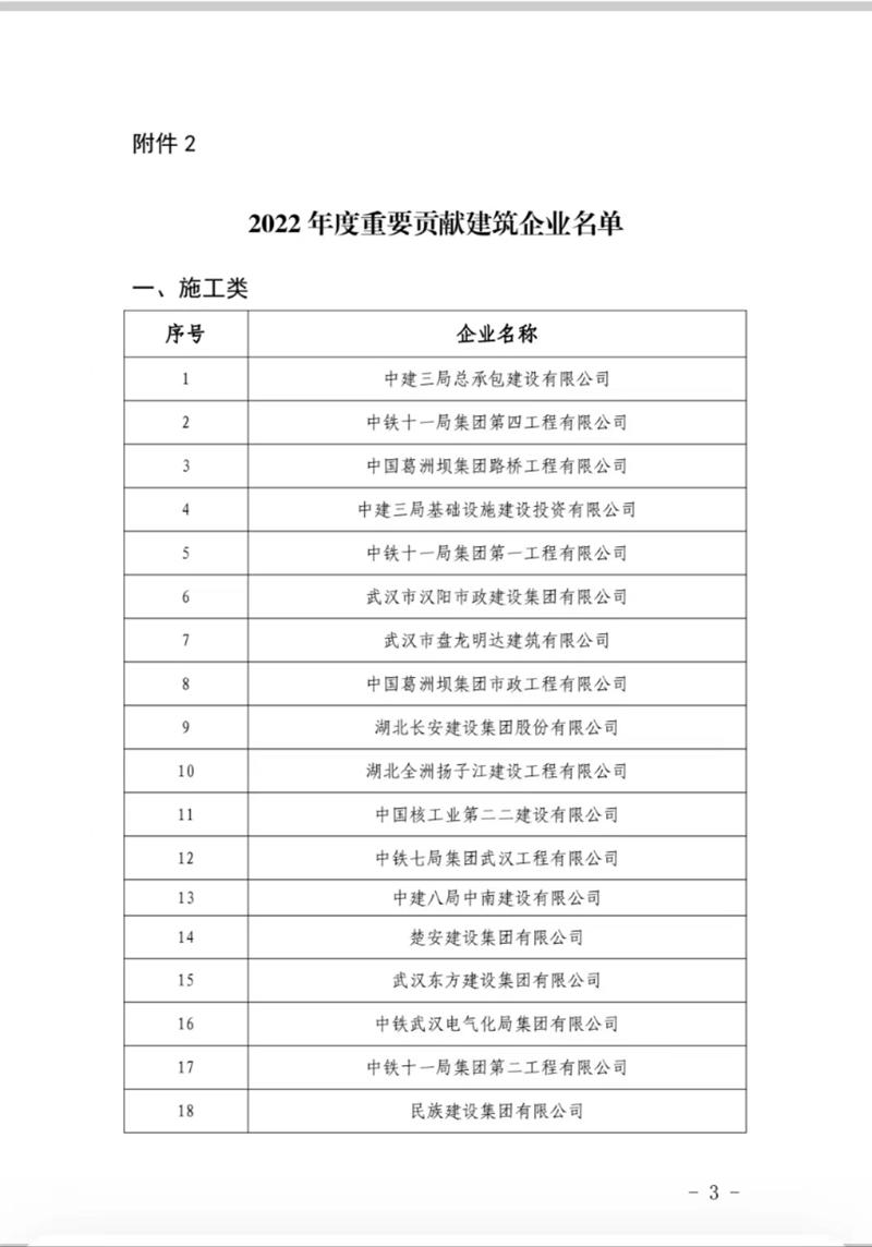 湖北省住建廳授予集團公司“2022年度重要貢獻建筑企業”榮譽稱號