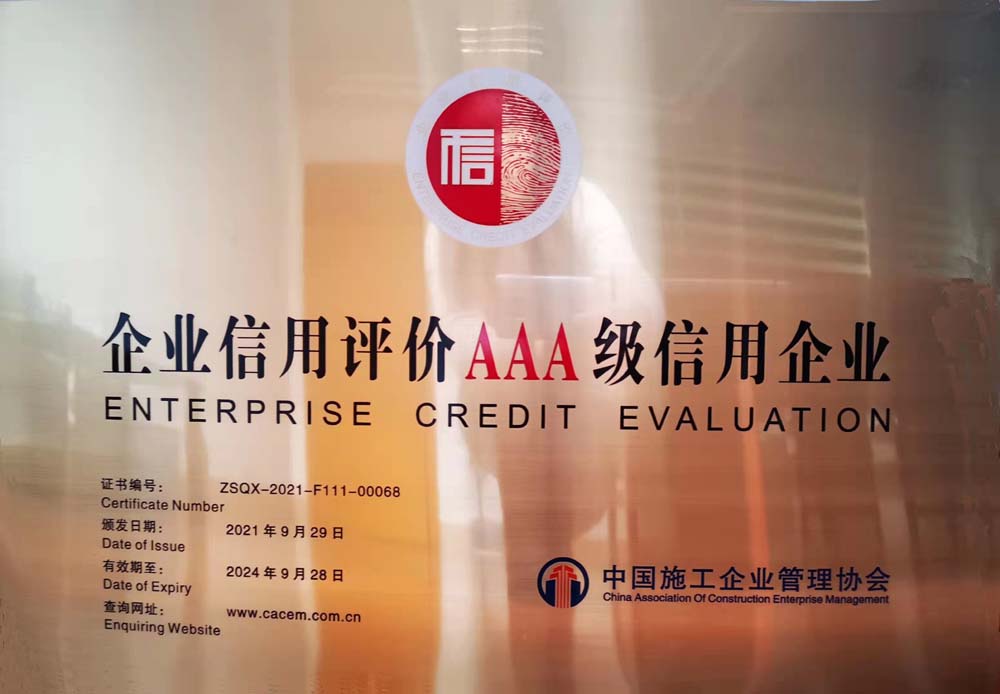 集團被中國施工企業管理協會評為“AAA級信用企業”