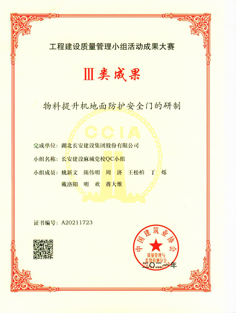 物料提升機地面防護安全門的研制(工程建設質量管理小組活動成果大賽Ⅲ類成果獎)