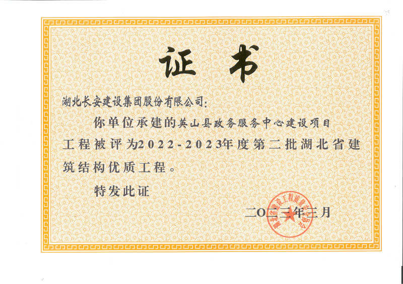 英山縣政務(wù)服務(wù)中心建設(shè)項目等7個工程獲評2022-2023年度第二批湖北省建筑結(jié)構(gòu)優(yōu)質(zhì)工程