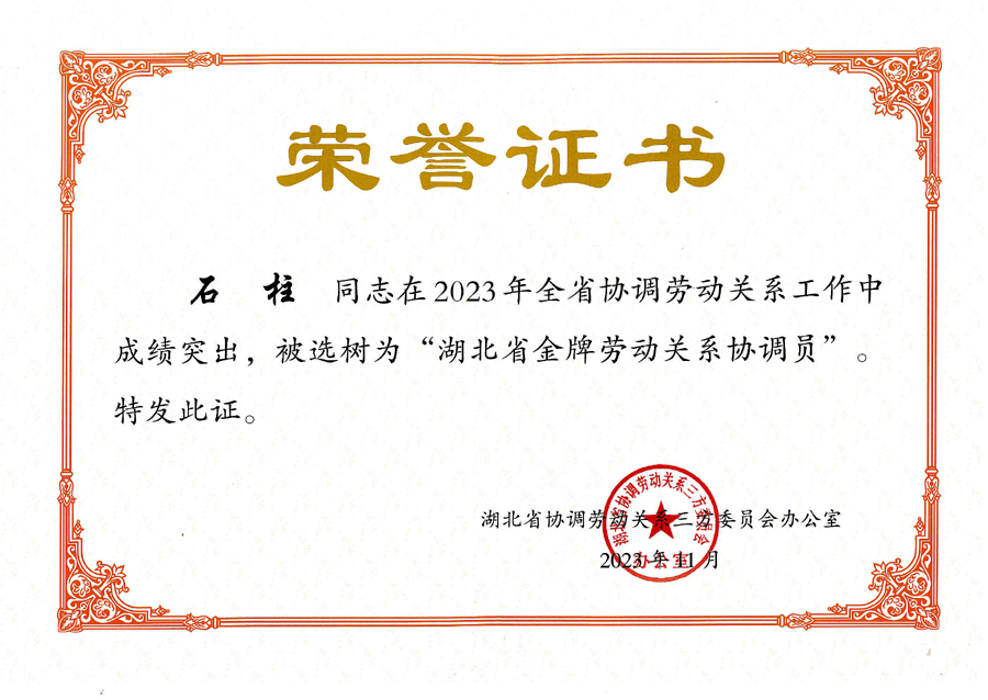 石柱被選樹為“湖北省金牌勞動關系協調員”