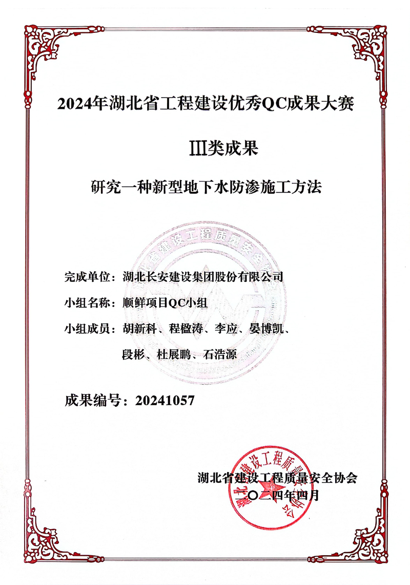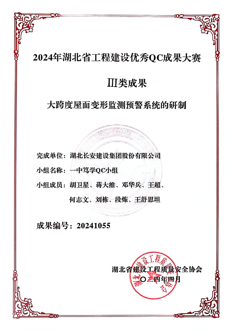 英山一中篤學(xué)QC小組《大跨度屋面變形監(jiān)測(cè)預(yù)警系統(tǒng)的研制》、順鮮項(xiàng)目QC小組《研究一種新型地下水防滲施工方法》獲評(píng)2024年湖北省工程建設(shè)優(yōu)秀QC成果大賽Ⅲ類成果