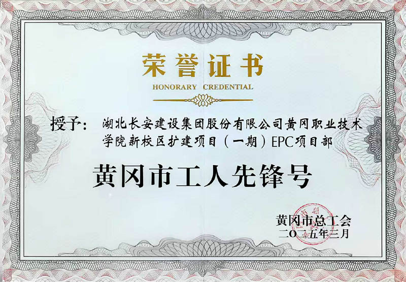 黃岡職業技術學院新校區擴建項目(一期)EPC項目部獲評“黃岡市工人先鋒號”