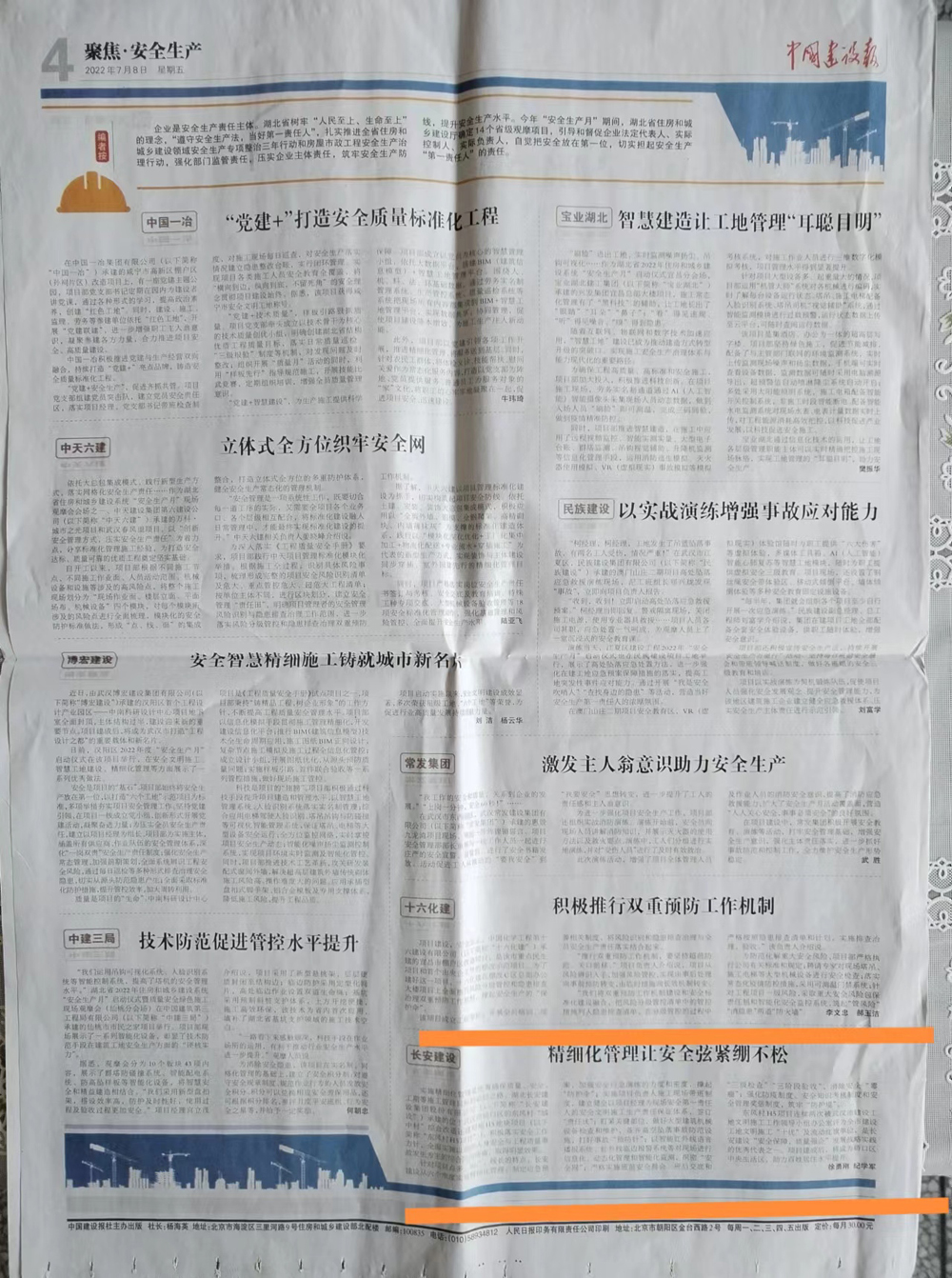 針對項目點多、面廣、線長的特點,長安建設從六個維度實施精細化管理:制定應急預案,加強安全應急演練的力度和密度,撐起“防護傘”;實施項目負責人施工現場帶班制度,建立健全以項目經理為現場安全第一責任人的安全文明施工生產責任保證體系,簽訂“責任狀”;盯緊關鍵部位,做好大型建筑機械設備檢查和維護,備齊高空墜落事故防范設施,打好事故“預防針”;以智能紅外線語音播報系統、紅外線臨邊報警系統等對現場進行信息化、動態化管理和智能化監測,織密“安全網”;嚴格實施班前安全晨會、班后交底和“三級檢查”“三階段驗收”,消除安全“毒瘤”;強化防疫制度、安全知識考核制度和安全管理獎懲制度,筑牢“防護堤”。