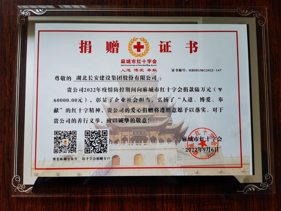 長安建設集團,一直把奉獻建筑精品和履行社會責任作為工作的重點和焦點,意氣風發(fā)地邁開“兩腿”奔跑在新時代建設征程中。據不完全統(tǒng)計,迄今己向社會捐款捐物3000余萬元。近日,集團公司向麻城市紅十字會捐贈抗疫款6萬元,受到表彰和贊賞。