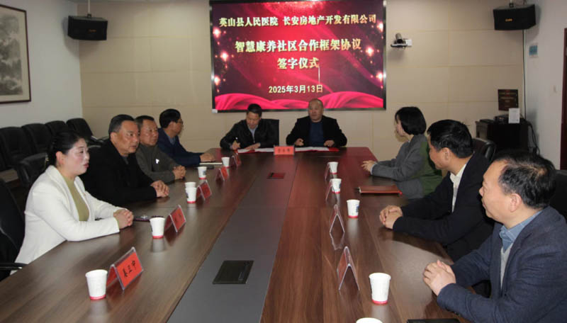 3月13日,春光明媚、暖意融融,英山縣人民醫(yī)院和長安房地產(chǎn)開發(fā)有限公司(簡稱:長安房產(chǎn)公司)聯(lián)合打造的智慧康養(yǎng)社區(qū)合作框架協(xié)議簽字儀式在英山縣人民醫(yī)院四樓會議室舉行。英山縣人民政府副縣長黃偉主持并作重要講話。英山縣衛(wèi)生健康局黨組書記段宗貴,英山縣醫(yī)共體總醫(yī)院(縣人民醫(yī)院)黨委副書記、院長姜衛(wèi)中,長安建設(shè)集團(tuán)黨委書記段衛(wèi)昌、董事長葉發(fā)保,長安房產(chǎn)公司經(jīng)理余招剛等有關(guān)負(fù)責(zé)人、代表參加。
