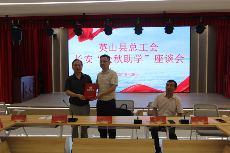 8月26日15時許,長安“金秋助學”座談會在英山縣工人文化宮“職工大講堂”舉行。英山縣委常委、縣委辦公室主任、統戰部部長、縣總工會主席黃軍文出席并講話,縣總工會黨組成員、副主席楊柳,縣總工會黨組成員、經審委主任王萍參加活動,縣總工會黨組書記、常務副主席曾毅主持。湖北長安建設集團董事長葉發保代表長安“金秋助學”捐款愛心企業發言,20余名受助貧困家庭學生及家長代表參加座談。