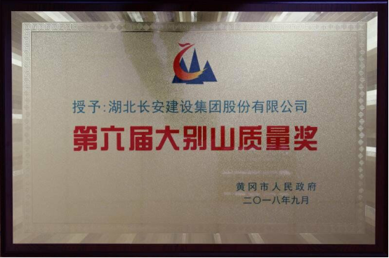集團公司榮獲“第六屆大別山質(zhì)量獎”。