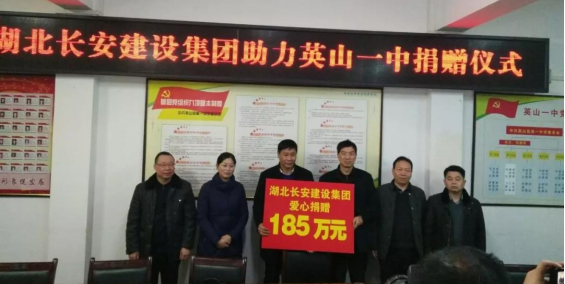 “讀書改變命運,教育開創未來。支持教育事業,就是關心祖國的未來。作為一個有愛心的企業,理應主動擔當社會責任……”1月30日,在湖北長安建設集團向縣一中一次性捐款185萬元捐贈儀式上,集團董事長段衛昌動情地說。