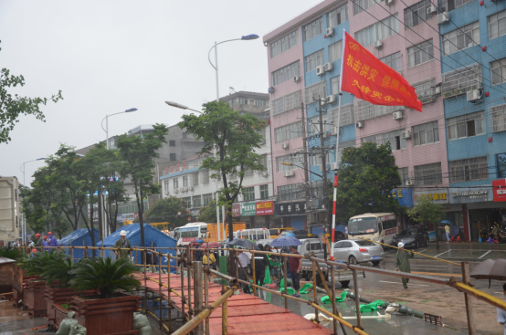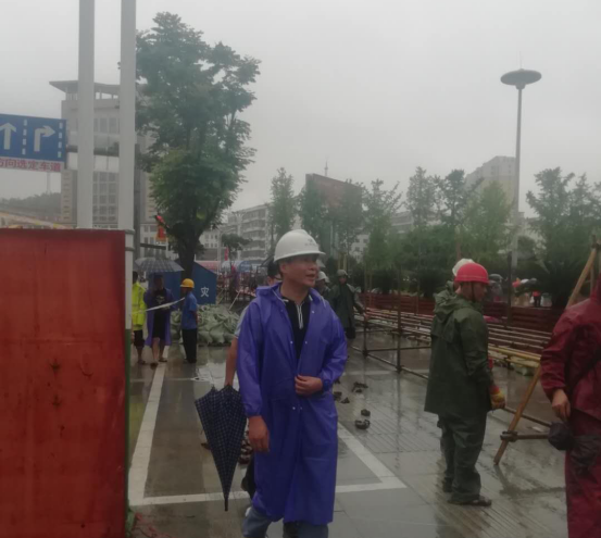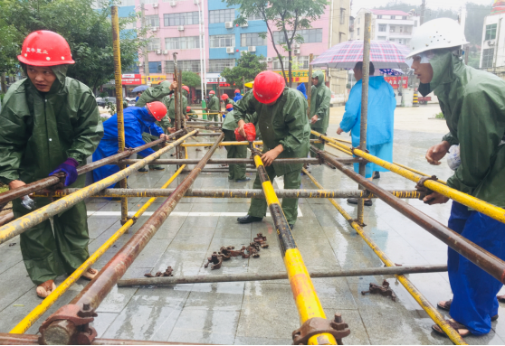 “我們絕對保證不讓任何一個考生因暴雨影響和洪災阻隔而進不了考場。長安建設集團有信心有能力鋪平坎坷路,搭建‘防洪橋’,天涯變咫尺。”7月6日12時許,在英山縣委、縣政府的領導下,在時間緊、任務重、天氣惡劣的環境中,湖北長安建設集團董事長段衛昌顧不上吃飯,迅速成立“抗擊洪災,保障高考”先鋒突擊隊,現場部署敦促搶建“防洪橋”。集團總經理葉發保親自調度指揮,協調鋼管、模板、腳手架等搭橋必需物資。后勤各部門一切行動聽指揮,全力為“防洪橋”提供保障。短短一個小時,集團各項目基地100余人迅速在畢昇大橋集結,冒著傾盆大雨積極投入到突擊隊伍中。