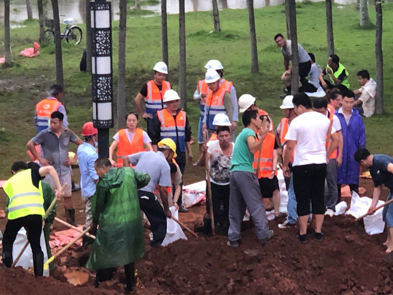 哪里有長安人,危難之際哪里就有他們的身影。7月10日,集團武穴項目部組織抗洪先鋒隊,守護武穴長江濱湖公園。